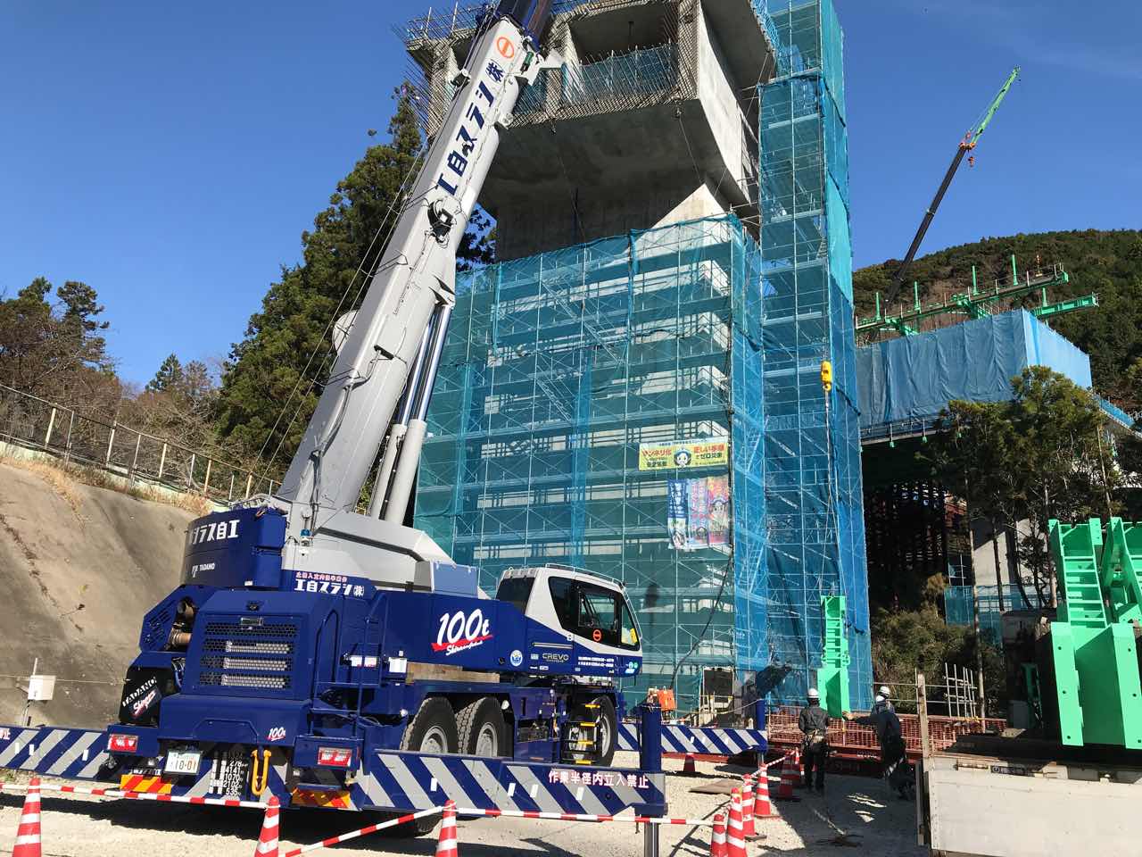 株式会社シラス自工では、正確、丁寧、安全をモットーに一般住宅から工場、ビル、マンションなどの建築現場をはじめ、道路や橋の建設現場で大型特殊クレーンを用いた作業に従事しています。